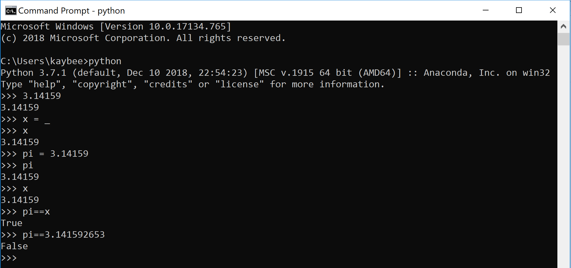 Naturally, python has rules for its typecasting. The variable pi, with the value 3.14159, is a float because it has a decimal point.