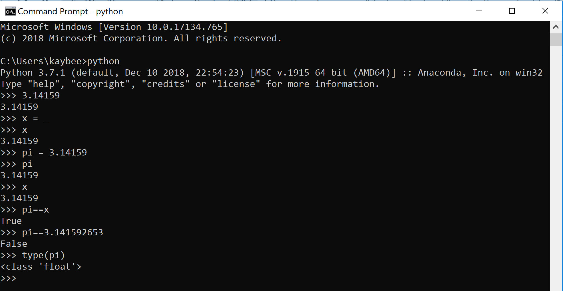 Take another look at the output for >>> type(pi). Float. Float? Like on a river?